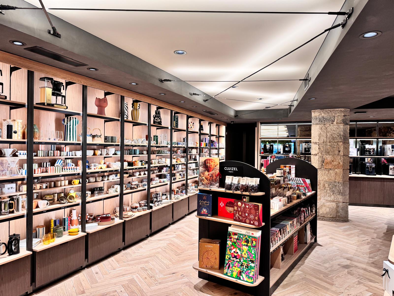 Plafond tendu - Plafond Tend'oc - Occitanie -accoustique coloris Pierre dans une boutique de café à Rodez